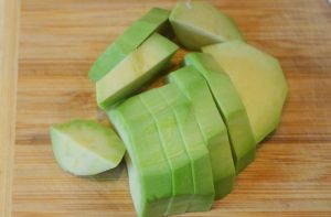 - Avocadomasse in Scheiben schneiden und anbraten. Verbreiten Auf Tomaten gießen, Olivenöl.