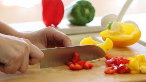 - Kartoffeln schälen, in kleine Stücke schneiden und garen 5 Minuten für ein Paar.