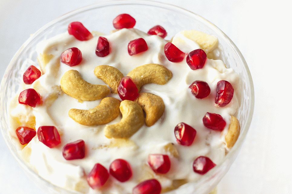 - Nachspeise mit Nüssen und Granatapfelkernen garnieren.