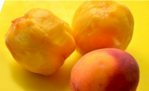 - Die Pfirsiche schälen, die Kerne entfernen und das Fruchtfleisch zurücklassen.