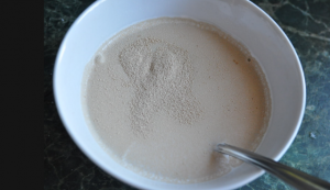 Roggenmehl vorher mit einem Tropfen warmem Wasser mischen wurde flüssig.