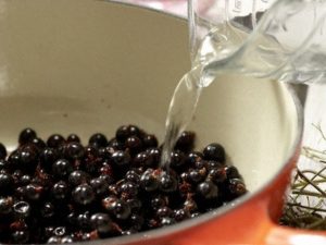 Die Beeren in Wasser kochen. Fügen Sie Honig und Gewürze hinzu.