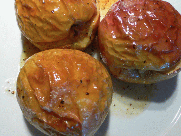 - Gießen Sie die fertigen Äpfel mit Sahne.