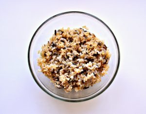 - Eine Mischung aus braunem und wildem Reis für mehrere Stunden einweichen, Damit es zarter und weicher wird, ist es besser, über Nacht einzutauchen. Mit einem halben Teelöffel Salz zart kochen.