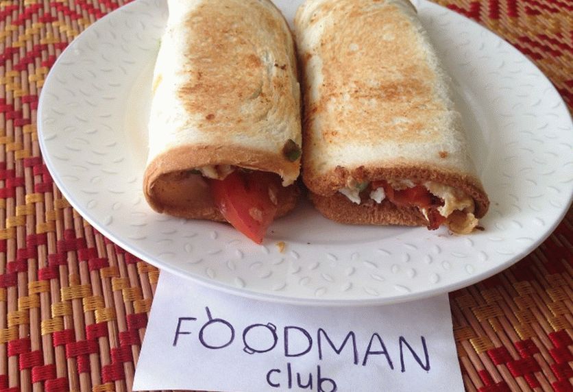 - Schneiden Sie die Tomate in Scheiben, Paprika in einem kleinen Würfel, Frühlingszwiebeln hacken.