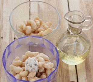 - Wir machen Bohnenpaste in einem Mixer. Setzen Sie dazu einen Mixer ein weiße Bohnen, Olivenöl, Salz und Pfeffer, eine Knoblauchzehe, Schale und Zitronensaft.