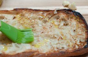 - Brot muss in einem Toaster oder Ofen gebräunt werden, reiben Knoblauch.