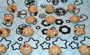 Hausgemachte Kekse mit saurem Geschmack Preiselbeeren hinzufügen. Sorgen Sie für einen gesunden Snack.