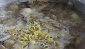 - Setzen Sie den Grill in die Suppe und Nudeln (Muscheln), je kleiner die Nudeln, desto weniger kochen sie.