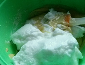 - Das Eigelb mit Zucker schaumig schlagen. Wasser hinzufügen und Butter ohne aufhören zu wischen.