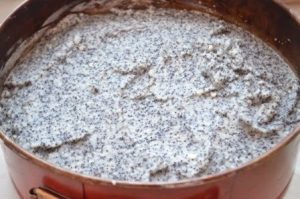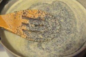 - Als nächstes Grieß und Mohn in die Milch gießen, mischen und geben 10 Minuten stehen lassen.