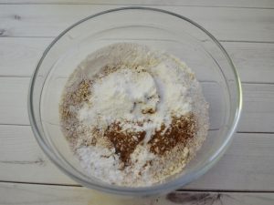 - Haferflocken mahlen bis Mehl. In einer Schüssel mischen alle trockenen Zutaten.