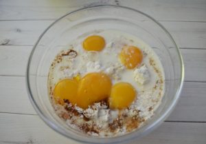 - Schlagen Sie die Weißen in einen Zustand von starkem Schaum, vorsichtig einführen der teig.