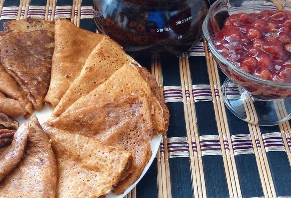 - Wir braten Pfannkuchen in einer heißen Pfanne in Öl.