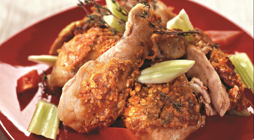 Ein Gourmet-Rezept für leckeres gebackenes Hähnchen mit Erdnüssen und Honig. Nicht banales Gericht, das es wert ist, zu Hause gekocht zu werden.