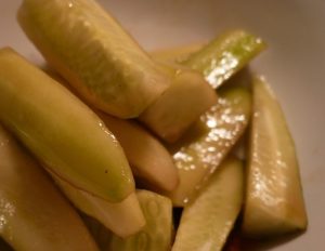 - Die vorbereiteten Gurken mit dem zweiten Teil Butter anbraten 10 Minuten.