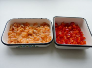 - Das Lachsfilet in Würfel schneiden, die Sahne in einer Pfanne schmelzen Öl und Braten, 4-5 Minuten Zum Fisch hinzufügen Die Paprikaschote mit dem Fisch weitere 3 Minuten ziehen lassen
