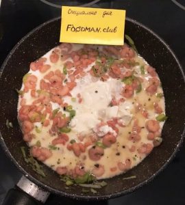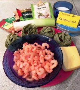 - Wir verbinden alles auf einem Teller: Legen Sie die Tagliatelle darauf Garnelen mit Sauce und mit Hartkäse bestreuen. Hab ein schönes Appetit!