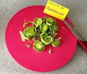 - Lauch in Ringe schneiden.