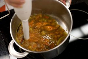 Mit einem Mixer glatt pürieren die Zutaten.