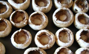 - Pilze (je größer sie sind, desto bequemer ist es zu kochen) waschen und waschen zu trocknen. Schneiden Sie die Beine ab und löffeln Sie die Innenseiten der Hüte heraus. Es ist wichtig, dies sorgfältig zu tun, um den Hut nicht zu durchbohren, ansonsten das Ganze Saft fließt beim Backen heraus.