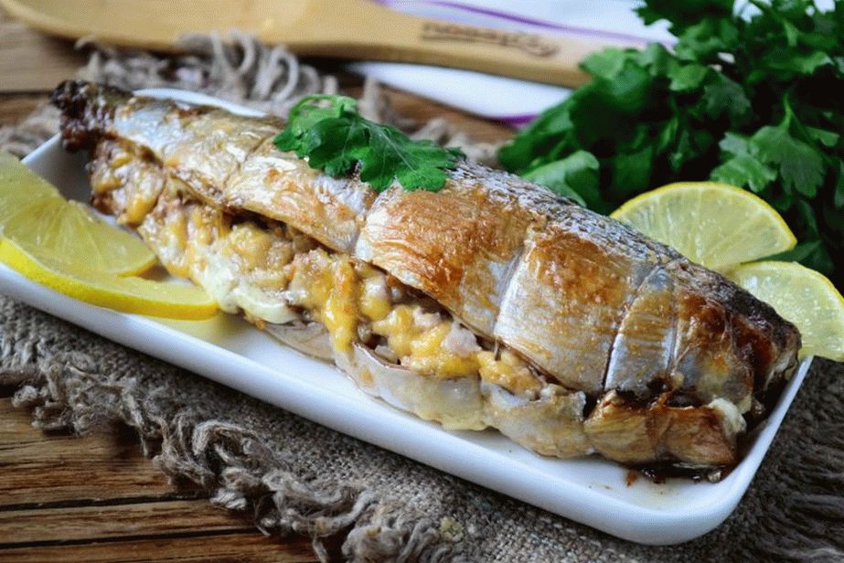 Gebackene Makrele mit Nüssen und Käse ist ein faszinierender Geschmack, ziemlich würdig, um es auf dem festlichen Tisch zu machen. Oder kochen für ein ruhiges Abendessen mit der Familie.