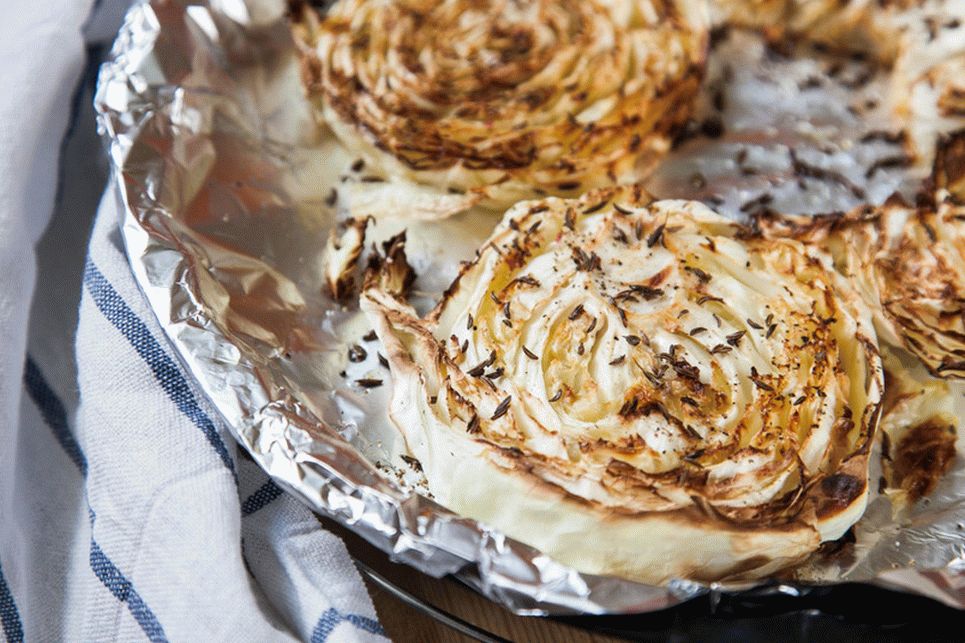 - Den Backofen auf 200 Grad vorheizen. Wir schicken Kohl hinein für 40-45 Minuten.