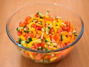 - Kombinieren Sie vorbereitete Gemüse in einer Schüssel, würzen Sie nach Geschmack Sojasauce, ggf. Salz.