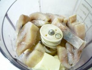 - Heringsfilet, Öl, Pfeffer und Fruchtfleisch in eine Mixschüssel geben Zitrone (Eifer ist nicht erforderlich). Schleifen.