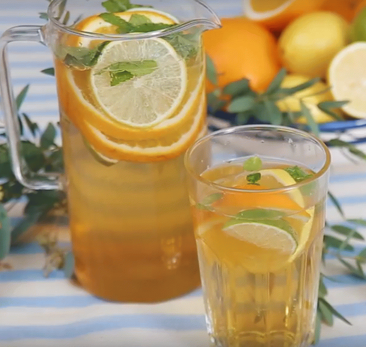 - Limette, Zitrone und Orange gründlich waschen und in dünne Stücke schneiden Kreise. In Scheiben geschnittene Zitrusfrüchte in einem Krug verteilen.