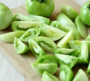 - Grüne Tomaten in mittlere Scheiben schneiden.