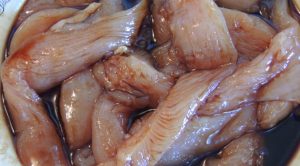 - Hähnchenfilet in Streifen schneiden. Tanken Sie 3 Essräume wieder auf Esslöffel Sojasauce und Zucker, eine halbe Stunde einlegen.