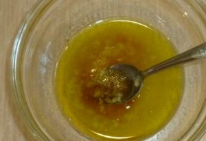 - Öl, Zitronensaft, gehackten Knoblauch, Salz und Pfeffer mischen.
