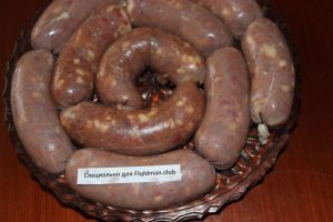 - Die entstehenden Würste können zum Tiefkühltruhe geschickt werden lagerung. Zum Garen den Backofen vorheizen, wenn Temperatur von 200 Grad. Auf einem eingefetteten Backblech verteilen Sonnenblumenöl, Bratwürste – nach Bedarf und hineinlegen ein Ofen mit einer Temperatur von 180 Grad für 1,5 Stunden. Auf dem Tisch servieren Würste lassen sich zu jeder Beilage, besser aber zu Gemüse und Soße, damit besser aufgenommen. Dieses Gericht ist sehr dicht, herzhaft – genau richtig nach harter Arbeit oder der Jagd nach einem Halt.