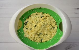 - Wir hacken Dill, fügen Käse hinzu, mischen und machen das Feuer aus. Abdecken und 30 Minuten ruhen lassen.