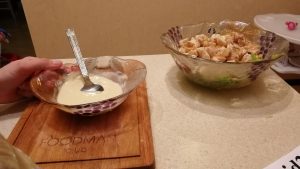 - Käse auf einer Reibe reiben. Machen Sie eine Sauce, mischen Sie dafür Mayonnaise mit Senf und Knoblauch hinzufügen.
