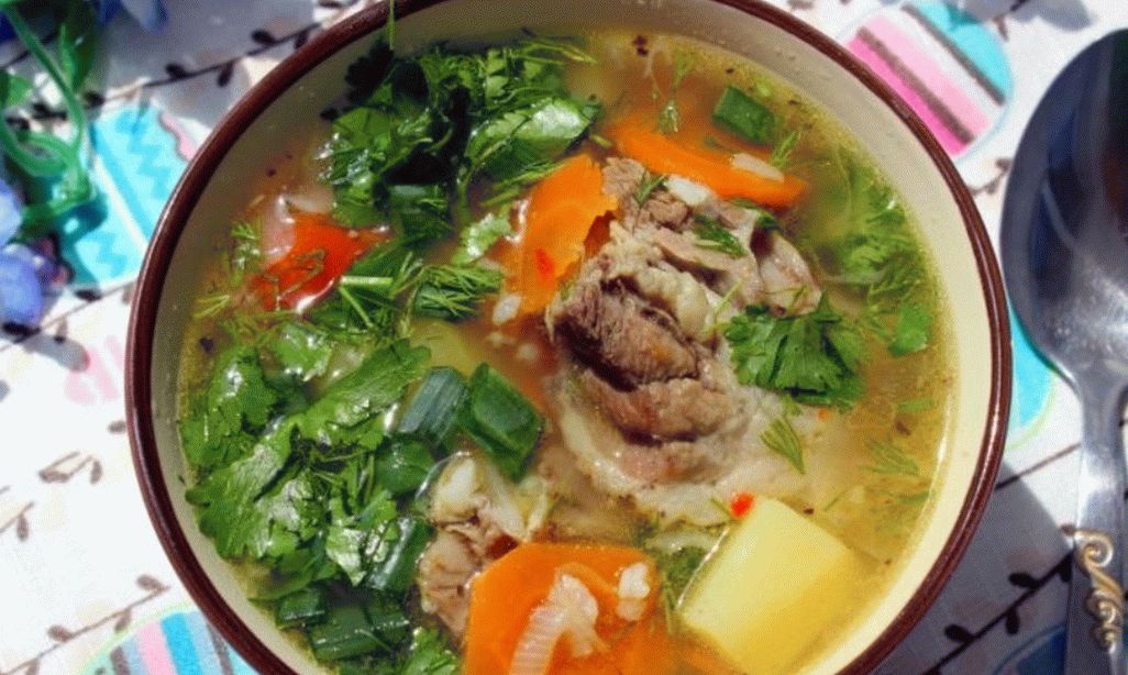 - Wir kochen Brühe aus Schaffleisch und Hühnchen. Nach dem Kochen und Entfernen schaum getrocknete wurzeln, lorbeerblatt, 5 stück in die suppe geben Pfeffer Erbsen. Das Fleisch 1-1,5 Stunden kochen lassen.