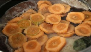 - Wir verteilen die Karottenkreise in der Brühe, kochen für 10 Minuten und fügen hinzu fig.
