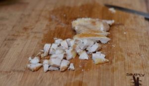 Gebratenes Schenkelfilet in kleine Stücke schneiden.
