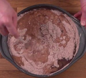 - Mehl, Zucker, Backpulver und Kakao mischen.