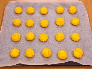 - Wir formen kleine Kugeln und verteilen sie auf einem Blatt.