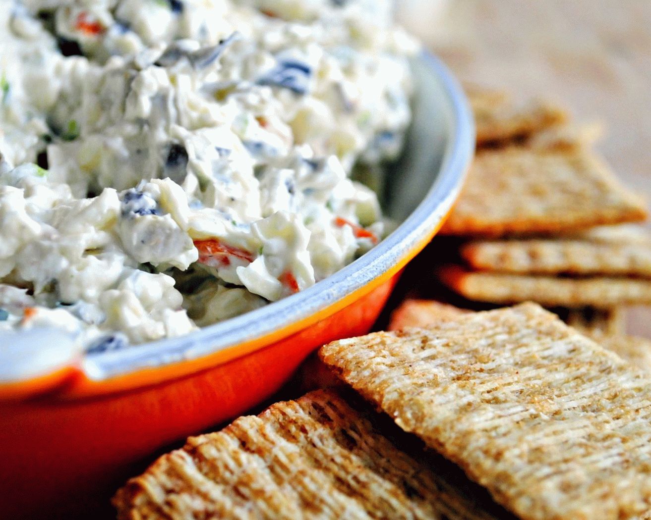 - Servieren Sie einen Käsesnack mit Crackern. Guten Appetit!