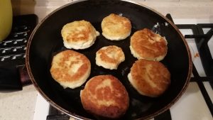 - Auf beiden Seiten in Pflanzenöl anbraten.