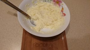 - Käse auf einer feinen Reibe gerieben und zum Kefir geben.