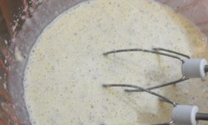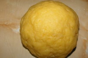 - Zum Eingießen einen Esslöffel Mehl mit Sahne mischen, Eigelb, Mandeln, Zucker und Eier.