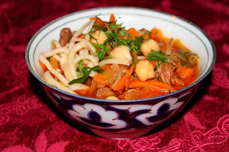 Lagman nimmt den mittleren Platz zwischen Suppe und Eintopf ein. Das ist berühmt Ein köstliches Gericht kam aus Asien zu uns. Es gibt viele Möglichkeiten. Kochen nach Hause Lagman. Unverändert bleibt was zu tun es ist notwendig, mit Nudeln und Sauce-Eintopf (Waja) Nudeln gegossen werden.