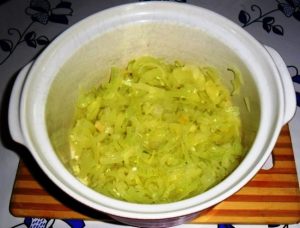 - Gehackte Zwiebeln in vorgewärmter Butter dünsten Transparenz.