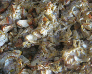- Mit Zwiebelringen und etwas Wasser bestreuen Marinade.