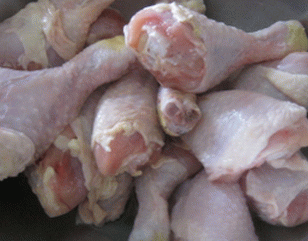 - Waschen Sie die Hähnchenschenkel und nehmen Sie die überschüssige Feuchtigkeit mit Papier auf mit einem Handtuch.