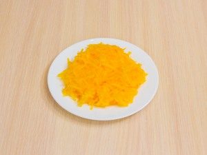 - Den geschälten Kürbis auf einer groben Reibe zerkleinern.